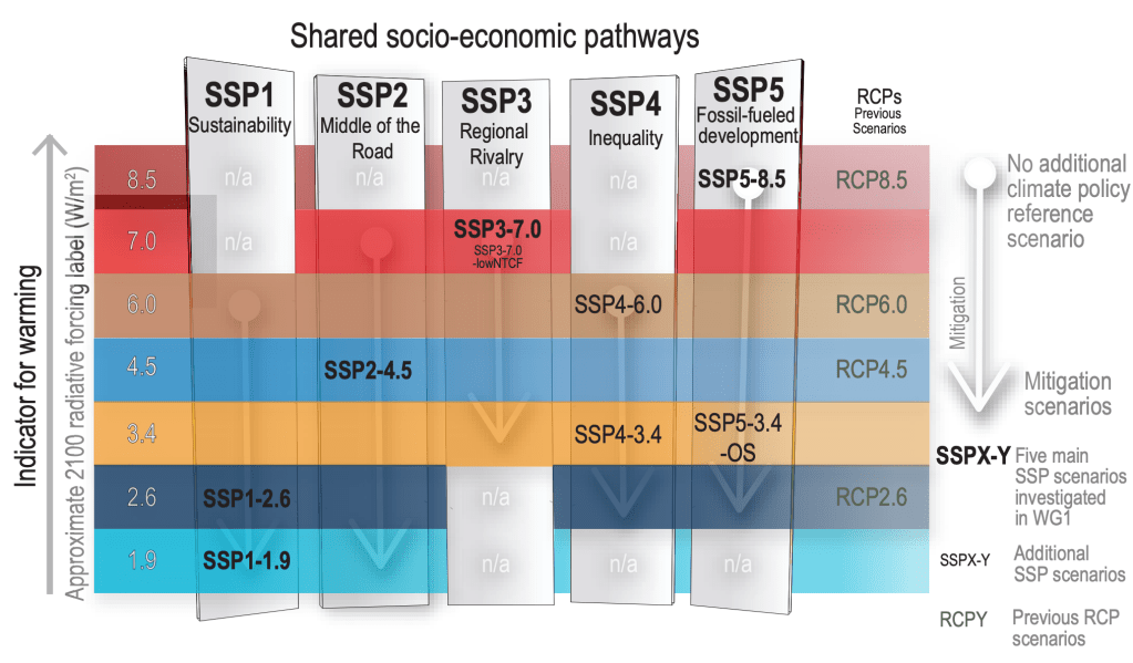 – Les scénarios SSP (cinq trajectoires socioéconomiques),